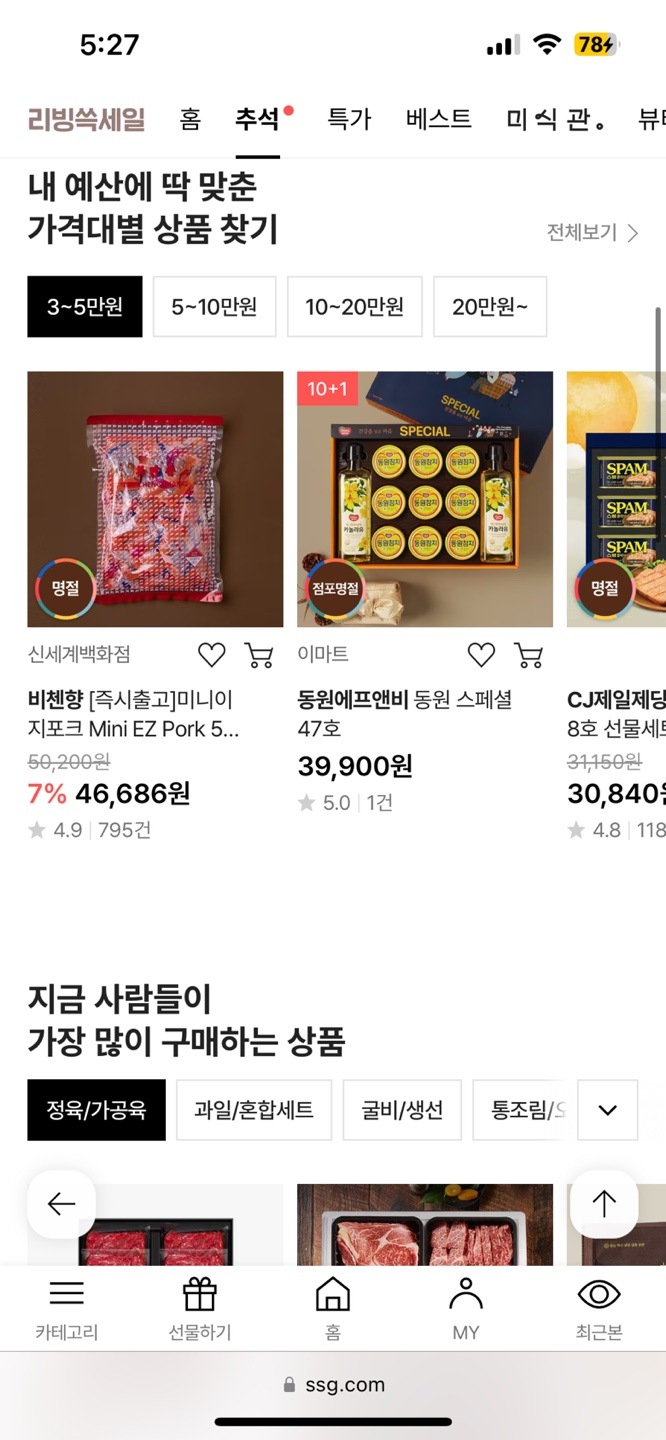 ssg 선물하기는 프리미엄 선물세트와 다양한 상품 옵션을 제공하며, 신세계만의 고품질 제품을 백화점에 직접 가지 않더라도 구매할 수 있습니다. 추석이 다가오기 전 백화점은 항상 사람이 많아 이용하기 불편해했는데요. ssg 선물하기에는 다양한 카테고리에 프리미엄 선물세트들을 한 번에 확인할 수 있습니다.