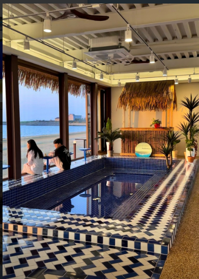 주말 10:00 ~ 20:30 - 소개 : 하와이다는 이국적인 분위기와 넓은 테라스를 자랑하는 카페로, 바다를 바라보며 하와이 감성을 느낄 수 있는 곳입니다. 바닷바람을 맞으며 시원한 음료를 즐기기에 딱 좋아요. 🏝️ 실내에서 석양을 바라볼 수 있고, 실내 인테리어가 이국적인 분위기라 사진 찍기도 좋아요
