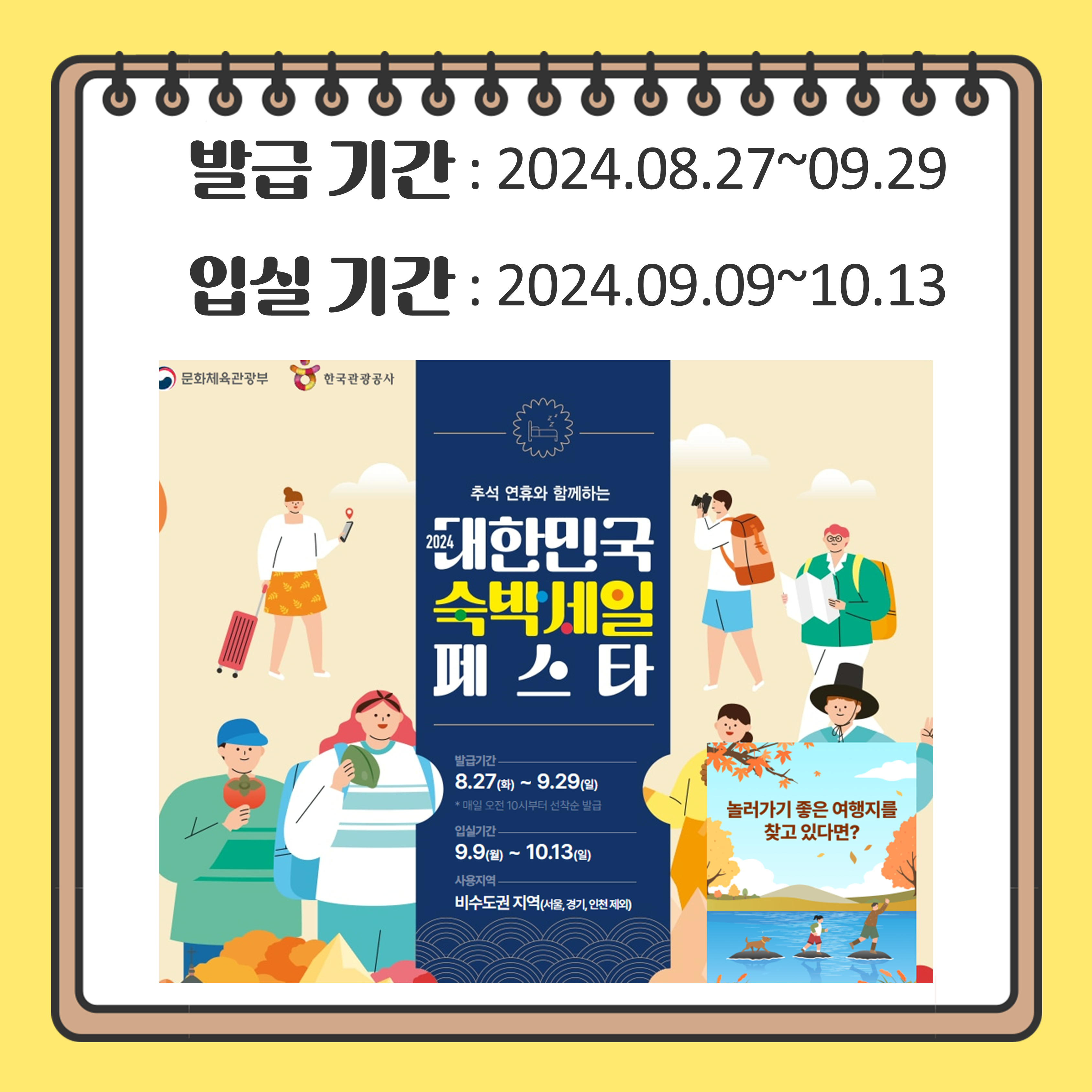 대한민국 2024 숙박페스타는 여러분의 여행을 더욱 특별하게 만들어 줄 다양한 혜택을 제공합니다.