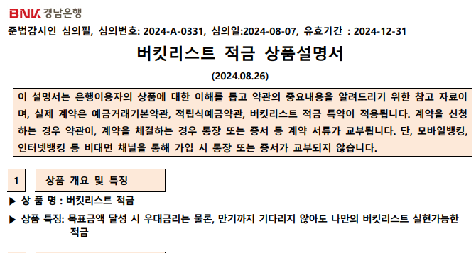 구체적으로 상품 설명을 보고 싶다면 경남BNK 공식홈페이지 상품설명서 PDF를 첨부하여 놓겠습니다.