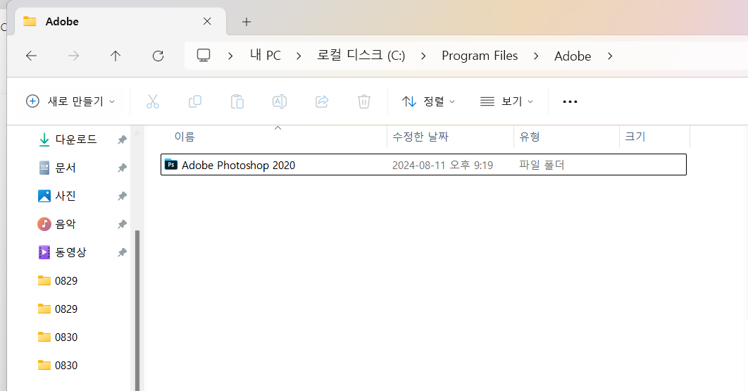※ 내 PC → 로컬 디스크 (C:) → Program Files → Adobe