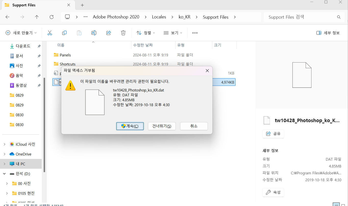 파일을 변경하고, 포토샵 파일을 키면