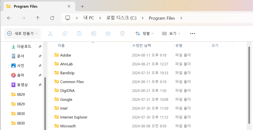 ※ 내 PC → 로컬 디스크 (C:) → Program Files
