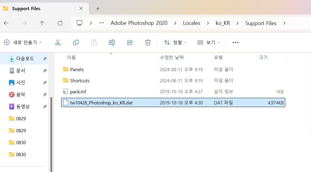C:\Program Files\Adobe\Adobe Photoshop 2020\Locales\ko_KR\Support Files