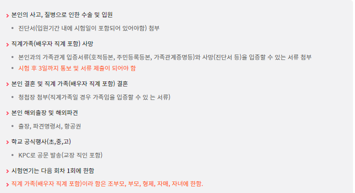 이외에는 시험 연기가 어려우니 참고하시길 바랍니다.