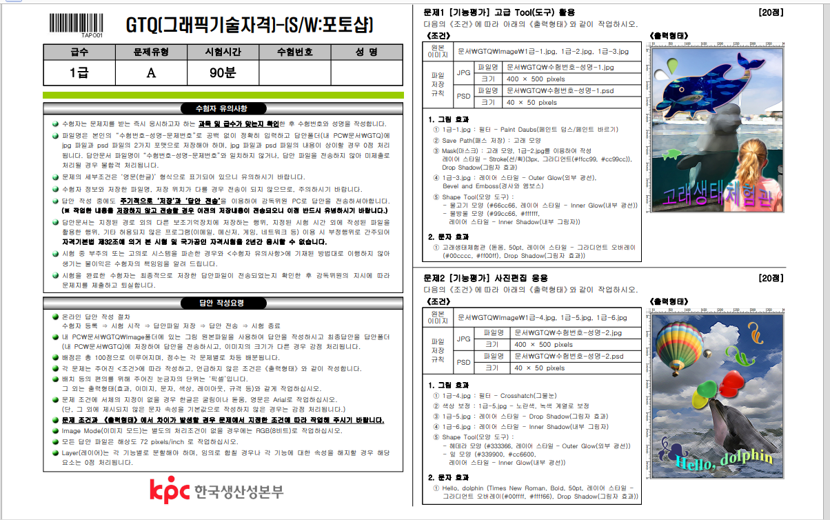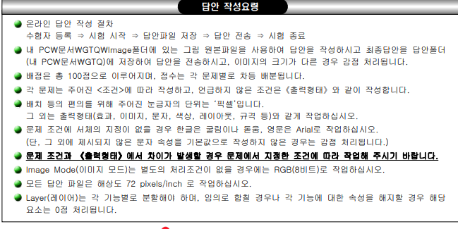 답안지를 제출해야 하고 GTQ 같은 경우는 PSD 파일과 JPG 파일을 제출해야 하기 때문에