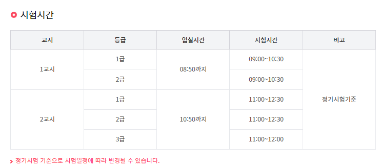 이렇게 세 가지 등급이 있습니다. 1급과 2급은 문제부터가 어느 정도 다릅니다.