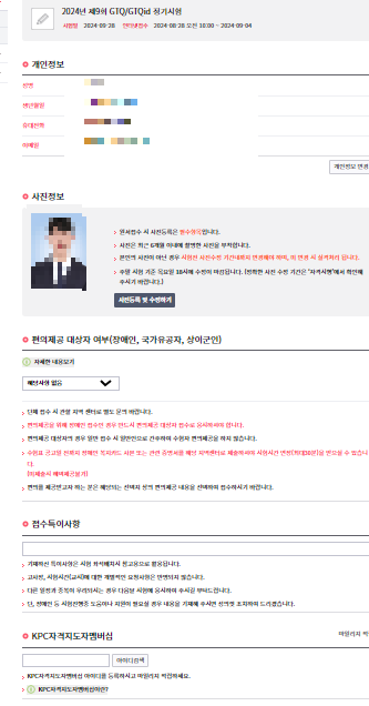 원서접수를 클릭하시면 GTQ(그래픽기술자격) 항목에서
